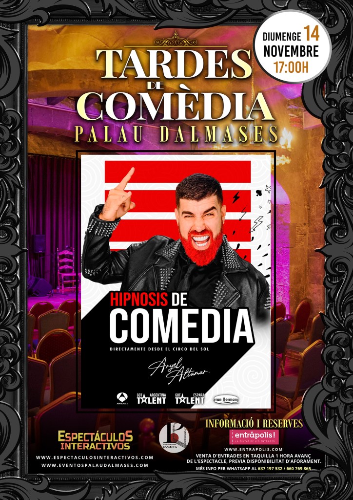 En un espai únic i amb un encant especial, podreu gaudir de grans humoristes i espectacles de primer nivell. En plé cor de Barcelona i a preus populars. Proper Diumenge 15, 17:00 Aryel Altamar (L’hipnotista del Cirque du Soleil i premiat els últims 6 anys com el millor hipnotista de Llatino Amèrica). Un dels millors shows d’hipnosis a nivell mundial.